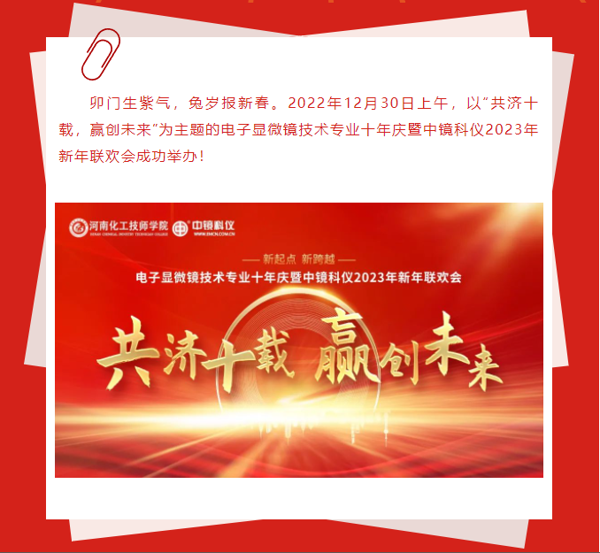 【共濟十載,贏創(chuàng)未來】祝賀電子顯微鏡技術專業(yè)十年慶暨中鏡科儀2023年新年聯(lián)歡會成功舉辦!