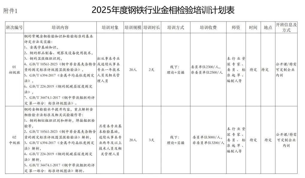 【行業(yè)會議】關(guān)于鋼鐵行業(yè)2025年度金相檢驗方法技術(shù)培訓(xùn)的通知