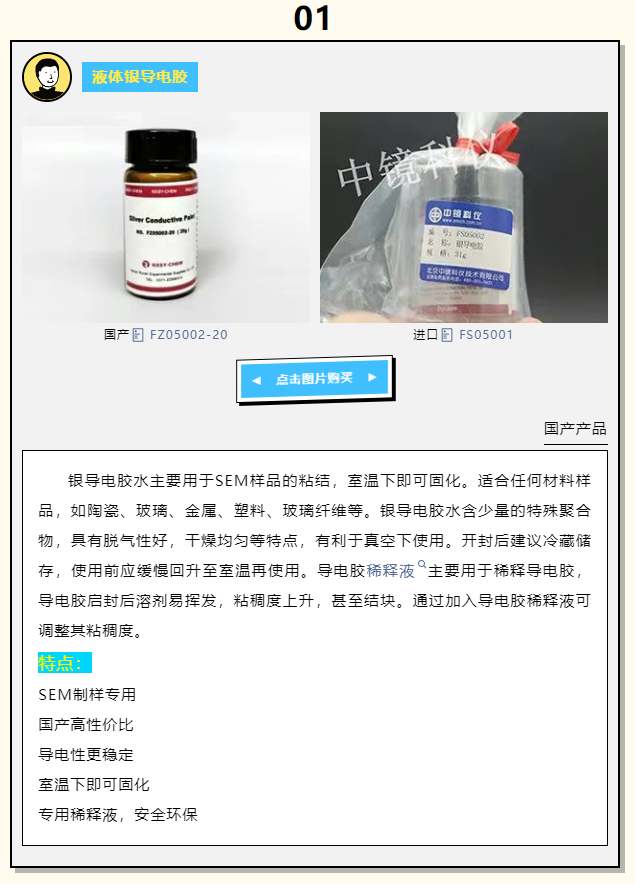 科研耗材用品精選 助力科研實驗高效 工欲善其事,必先利其器!一款優秀的電鏡耗材不僅能助力您的實驗成功進行并得到完美結果,而且還能為您節省科研經費,讓您擺脫進口品貨期長且價格昂貴的困擾,使科研之路沒有后顧之憂。本次為各位科研大佬精選幾款優秀的國產耗材,為您帶來更好的應用體驗!
