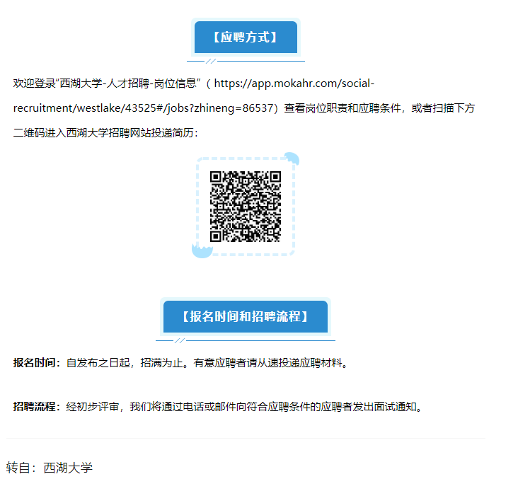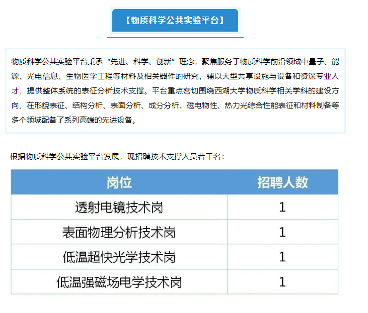 【行業招聘】分絲析縷,明見萬里 | 西湖大學技術支撐崗位招聘
