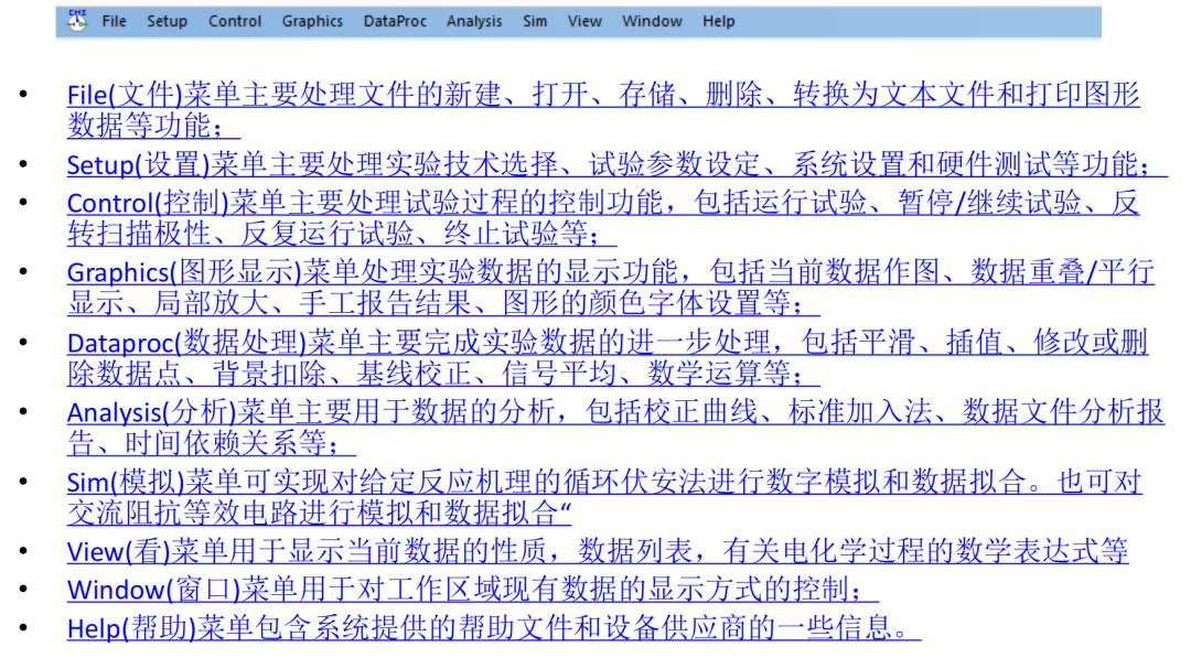 今天我們以辰華的CHI系列電化學工作站為例,給大家普及一下電化學工作站的基本操作,讓各位電化學小白秒變大神! 由此可以看出,電化學工作站的功能選項高達幾十種,真的太強大了! 循環伏安法是電化學測量中最為常見的方法之一,從中可以得到電化學反應過程中的氧化反應情況和還原反應情況! 電化學交流阻抗的等效電路圖擬合需要借助其他軟件,需要的小伙伴可以在公眾號留言,我會手把手給您教程的哦! “疊加數據”按鍵比較常用,可以用來比較各個譜圖之間的變化! ok,這次先普及到這里,關于電化學,我相信有很多小伙伴有十足的經驗和技巧愿意和大家分享,我們也會繼續整理大家需要的操作教程的哦!