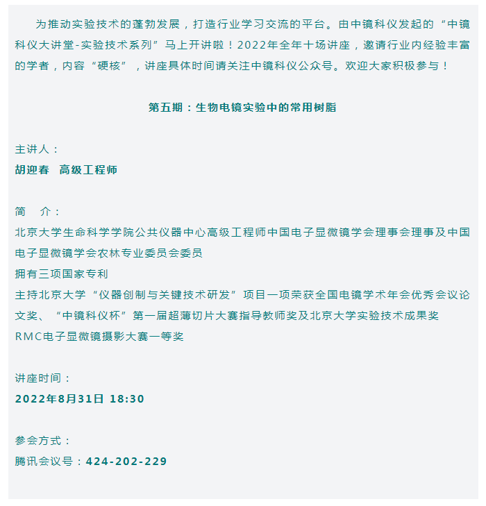 【行業會議】中鏡科儀大講堂-實驗技術系列(第五期)