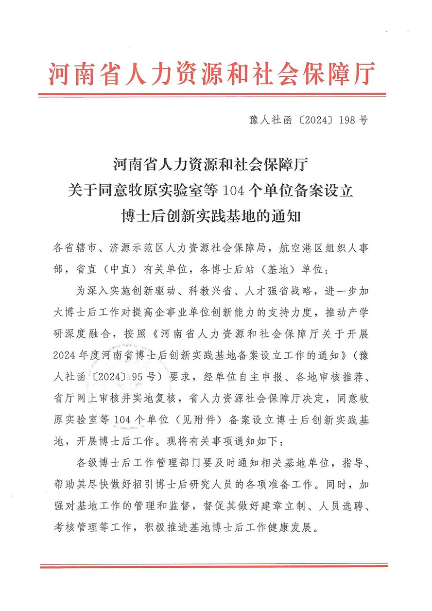 喜 報 熱烈祝賀 河南中鏡科儀科技有限公司 獲批設立河南省博士后創新實踐基地! 近日,河南省人力資源和社會保障廳發布了《河南省人力資源和社會保障廳關于同意牧原實驗室等104個單位備案設立博士后創新實踐基地的通知》,河南中鏡科儀科技有限公司成功獲批設立河南省博士后創新實踐基地。 博士后創新實踐基地是由河南省人力資源社會保障廳批準開展技術創新實踐活動的科研平臺,是聚集創新技術人才,通過產學研用結合,致力科技攻關、破解技術瓶頸,提升發展動能的重要載體。 多年來,中鏡科儀始終本著“客戶至上、誠信合作、務實雙贏、敬業奉獻、開拓創新”的基本理念,在科學研究與試驗發展領域深耕細作,建設有省級新型研發機構、工程技術研究中心等多個科研平臺,先后獲批國家級高新技術企業、河南省專精特新企業。在行業學會及眾多專家的支持下,積極與高校科研院所開展產教融合深度合作,打造實驗室產業生態圈,助力我國的科研事業蓬勃發展。 中鏡科儀此次成功獲批設立博士后創新實踐基地,是省、市領導及專家對中鏡科儀人才培養、科研創新等工作的充分肯定與認可。中鏡科儀將充分利用博士后創新實踐基地的優勢,持續加強人才引育力度,推進高層次創新人才培養,推動科研創新與科技成果轉化,充分發揮人才在創新推動等方面的引領作用,為河南省經濟社會發展提供有力的人才支撐。